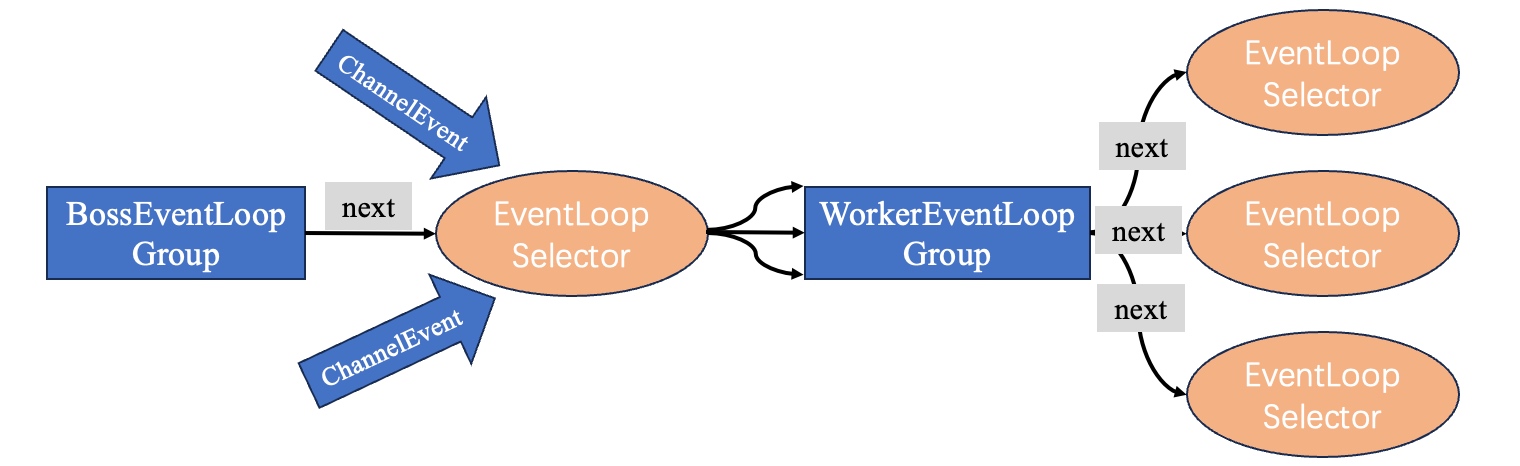 next接口可以按照一定规则从组里获取一个 EventLoop 来处理任务。